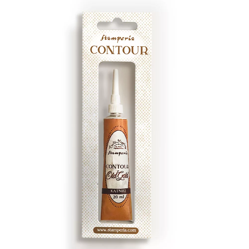 A Stamperia Create Happiness Contour Liner Old Gold egy vízbázisú festék óarany csillogással. Az univerzális kontúrfesték bármilyen felületen alkalmazható. Preciziós hegyének köszönhetően, ideális minták körberajzoláshoz, kiemeléséhez és 3D motívumok készítéséhez.