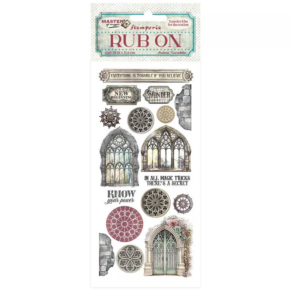 Stamperia Master of Magic Kaparós matrica Gothic windows Rub-On (1 ív).