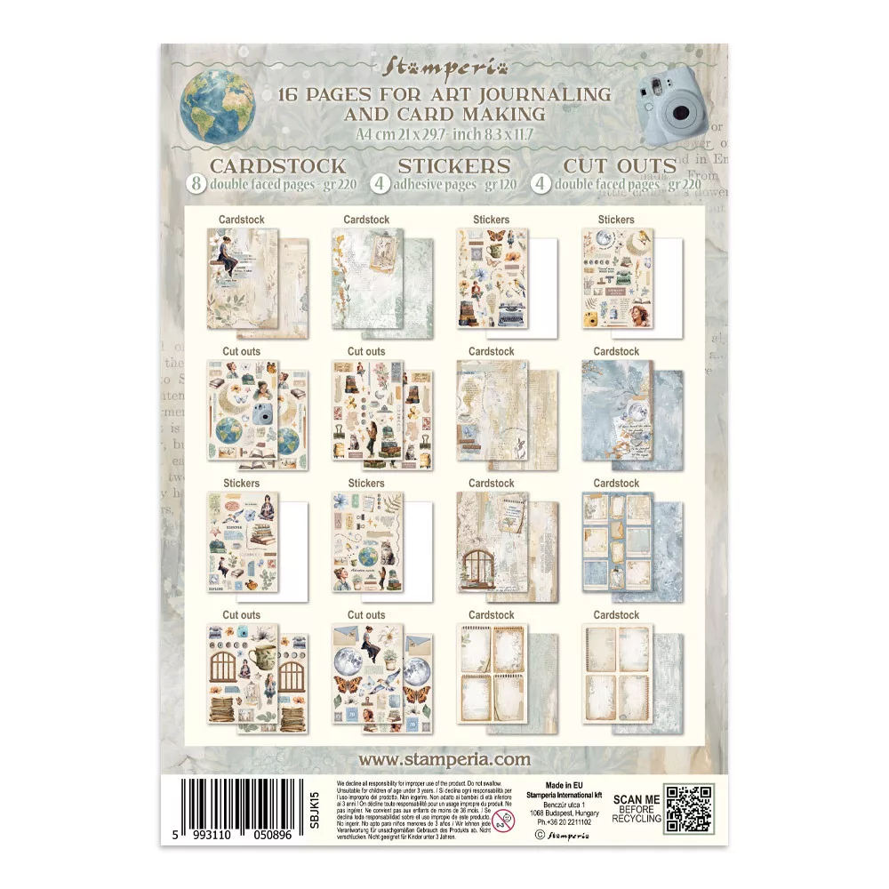 Stamperia Secret Diary  Junk Journal Stickers, Cut-Outs, Backgrounds (1 csomag)