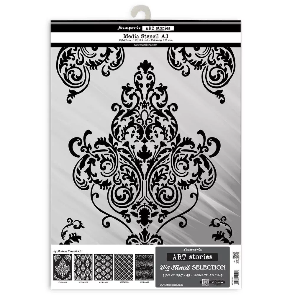 Stamperia Selection Vastag stencil A3  Art Stories A3 Big Stencil Selection (5 db)