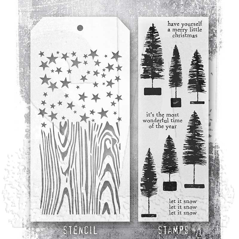 • Kombinált stencil: Woodgrain (THS023) & Falling Stars (THS115) elemekkel