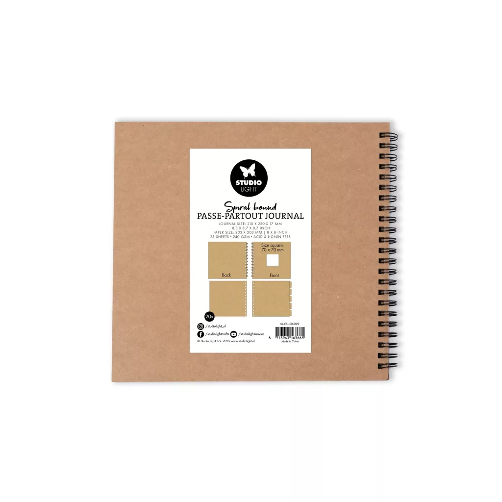A Studio Light Essentials spirálkötésű ablakos journal egy olyan kreatív alap, amely kifejezetten a rétegezett, történetmesélő alkotásokhoz készült. Az oldalakba vágott 70 × 70 mm-es ablakos kivágások lehetőséget adnak arra, hogy egy-egy részletet, fotót, bélyegzett motívumot vagy festett elemet, kiemelj, miközben a mögötte lévő rétegek is láthatók maradnak.