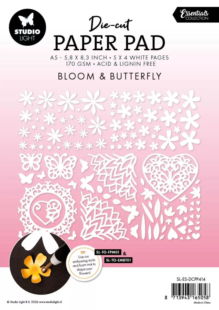 Studio Light Bloom & Butterfly Kivágatok A4 Die-cut Designer Paper Pad ( 5). Mérete: