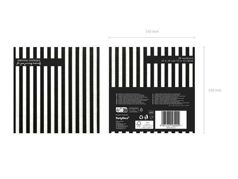 Szalvéta fekete fehér csíkos (20 db)