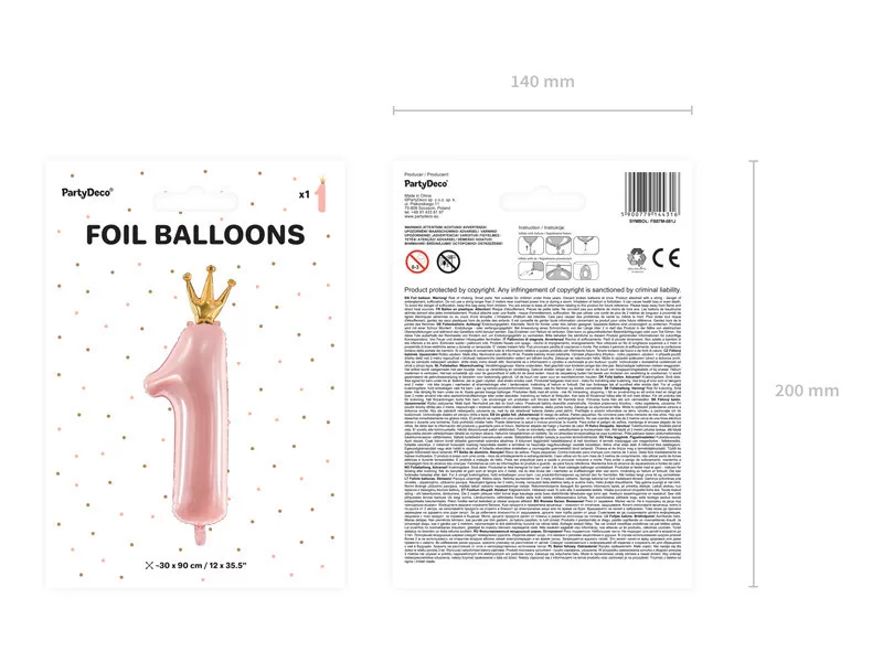Szám fólia lufi ''1'' rózsaszín 37x100cm