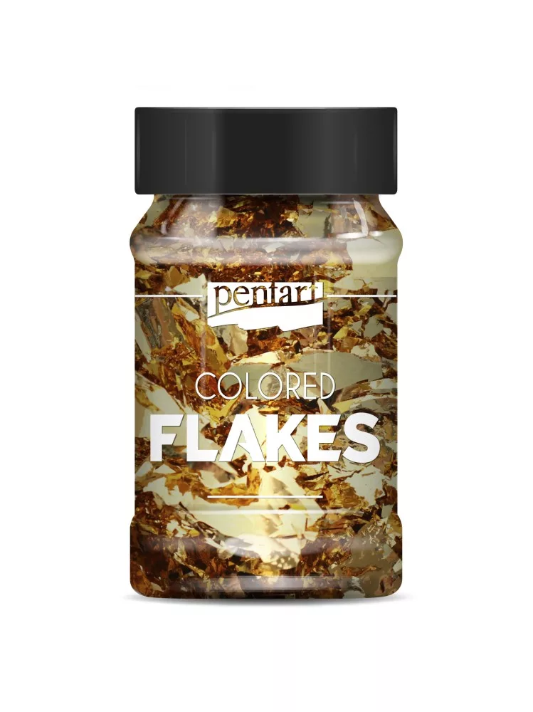 Színes fólia pehely min. 1 g, barokkarany. Rendkívül vékony, színes, metál hatású fólia, melyet az öntapadóra száradó ragasztóval vagy a füstfólia ragasztóval vihetünk fel a díszítendő felületre. A munka zárására használjunk Pouring lakkot. A pelyhek 11 színben kaphatóak, ebből 3 vegyes színű. A lapokat 8 színben kínáljuk.