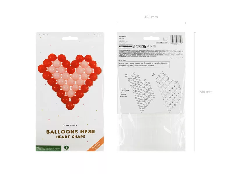 Egy igazán látványos és romantikus dekoráció, amit te magad is könnyedén elkészíthetsz! Ez az áttetsző műanyagból készült szív alakú lufiháló akár 38 darab mini lufit is megtart, így tökéletes választás esküvőkre, valentin-napra, eljegyzési bulira, vagy akár egy szívhez szóló anyák napi dekorációhoz.