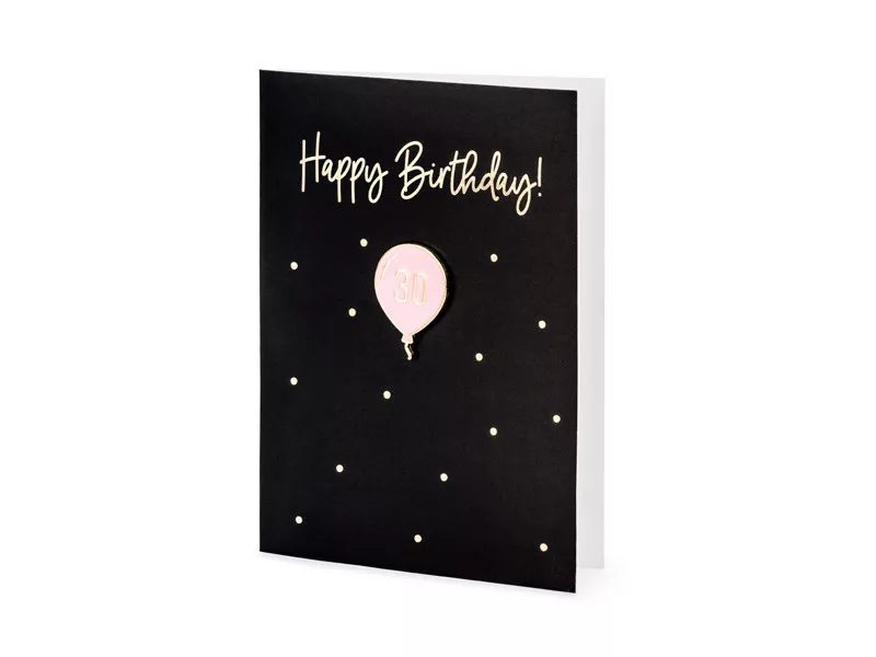 Üdvözlőlap zománc „30” lufi kitűzővel Happy Birthday felirattal – Elegáns és stílusos ajándék!