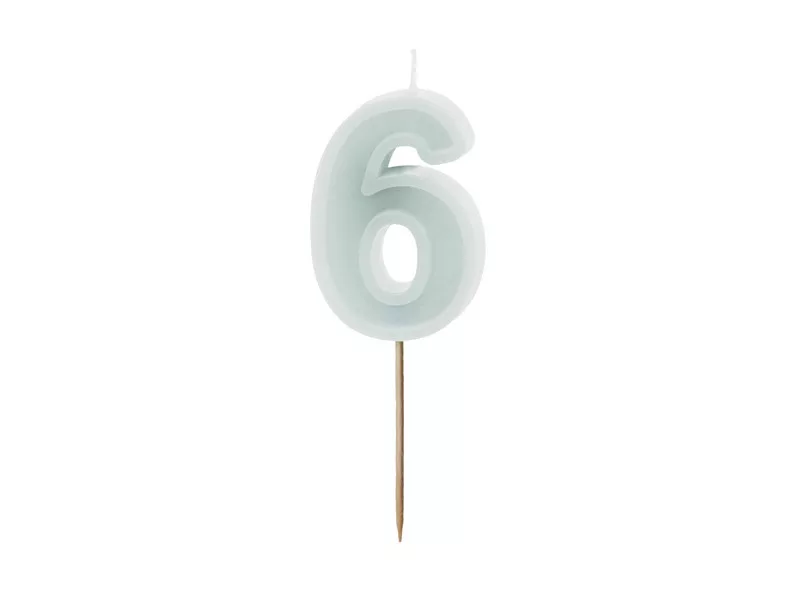 Varázsold el a születésnapi tortát ezzel a világos menta színű, 6 számot ábrázoló gyertyával! Tökéletes választás minden korosztály számára, és bármilyen tortán bájosan mutat.