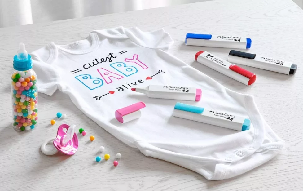 Textilfilc , Baby-Colours and 1x black / Faber-Castell Textile Marker -  (5 db)