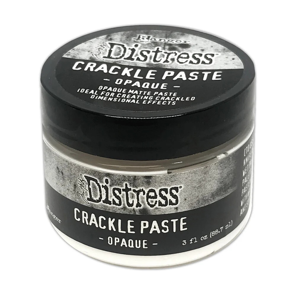 A Tim Holtz Distress® Crackle textúrapaszta, deális a felületek textúrált hatásainak létrehozásához. Száradás közben a paszta megrepedezik.  Vidd fel egyszerűen spatulával. Színezd nedvesen vagy szárazon különféle Distress termékekkel.