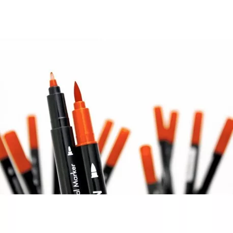 Dupla hegyű tinta toll. A vékony fele kommentek írására alkalmas, a vastag ecsetszerű fejével festhetünk, árnyékolhatunk vagy közvetlenül a bélyegzőre felvíve, színes lenyomatokat készíthetünk.