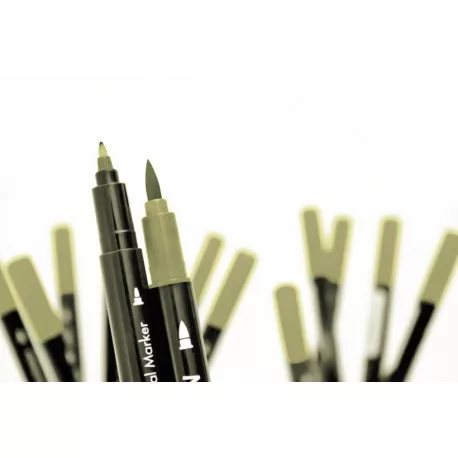 Dupla hegyű tinta toll. A vékony fele kommentek írására alkalmas, a vastag ecsetszerű fejével festhetünk, árnyékolhatunk vagy közvetlenül a bélyegzőre felvíve, színes lenyomatokat készíthetünk.