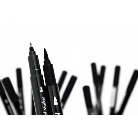 Dupla hegyű tinta toll. A vékony fele kommentek írására alkalmas, a vastag ecsetszerű fejével festhetünk, árnyékolhatunk vagy közvetlenül a bélyegzőre felvíve, színes lenyomatokat készíthetünk.