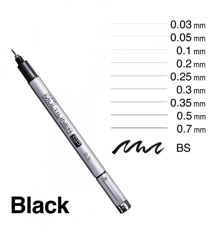 COPIC Multiliner SP egy vázlat- és rajztoll, amely elegánsan ötvözi a funkciót és a tartós, elegáns dizájnt. A tollhegyek és a patronok könnyen cserélhetők, a tollhegyek tömör fémhüvelyekbe vannak foglalva, garantálva a precíz rajzolást és a hihetetlen részletességet. Pigment alapú tinta, amely víz- és alkoholálló, és ideális a Copic markerekhez. A tinta nem fog elmosódni vagy fakulni, az áramlás pedig egyenletes, így ideális mindenféle vázlathoz és illusztrációhoz. Többféle méretben és ecset stílusban is elérhető.