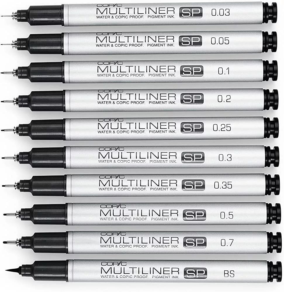 A COPIC Multiliner SP tűfilc 10 különböző tollméretben kapható, így a jelölések széles választékát precízen és irányítottan fedezheted fel. Ecsetvéggel is kapható, amellyel nagyszerű hatásokat hozhatsz létre.