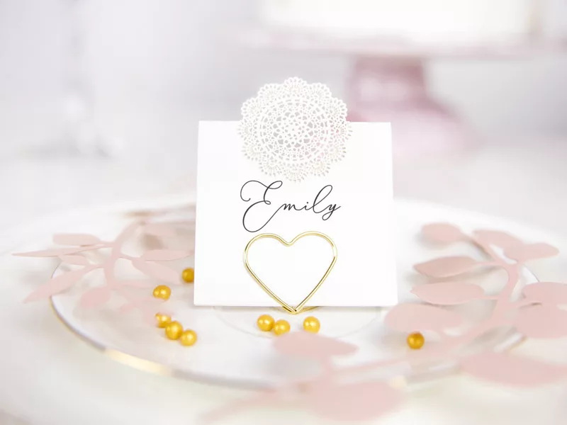 A csomag tartalma: 10 darab arany szív alakú ültetőkártya tartó.