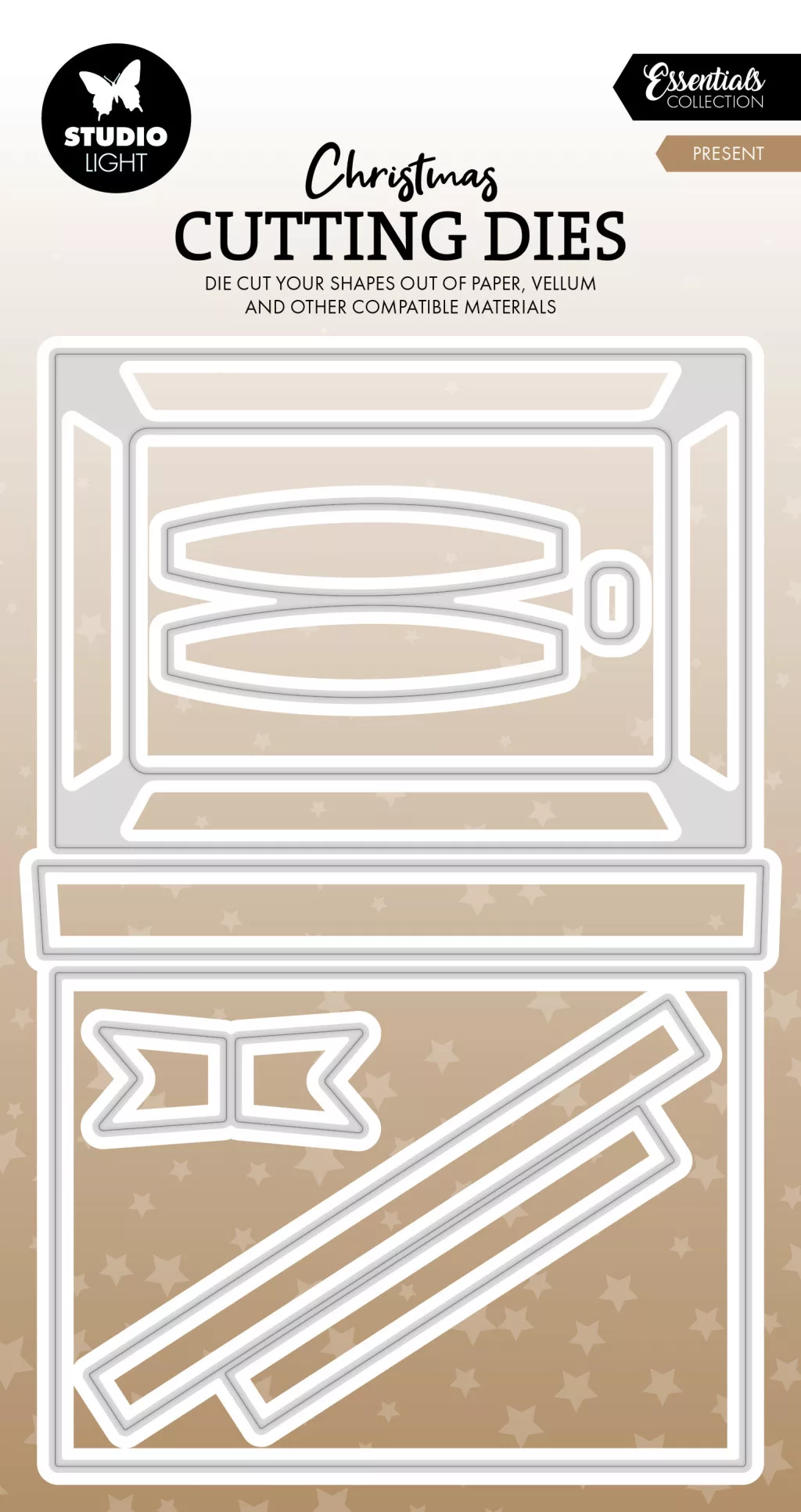Varázsolj ünnepi hangulatot alkotásaidba a Studio Light Christmas Essentials sorozatából származó „Present” vágósablonnal! A szettben található 7 különböző elem tökéletes ajándékdoboz-motívumokat kínál, amelyekkel egyedi karácsonyi képeslapokat, ajándékkísérőket, scrapbook oldalt vagy téli dekorációt készíthetsz.