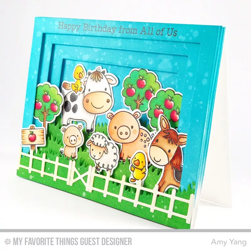 Vágósablon, bélyegzővel , Animal Farm / MFT Clear Stamps + Die-namics Set (1 csomag).