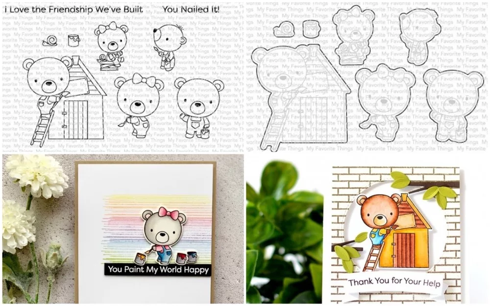 Vágósablon, bélyegzővel , Builder Bears / MFT Clear Stamps + Die-namics Set (1 csomag).