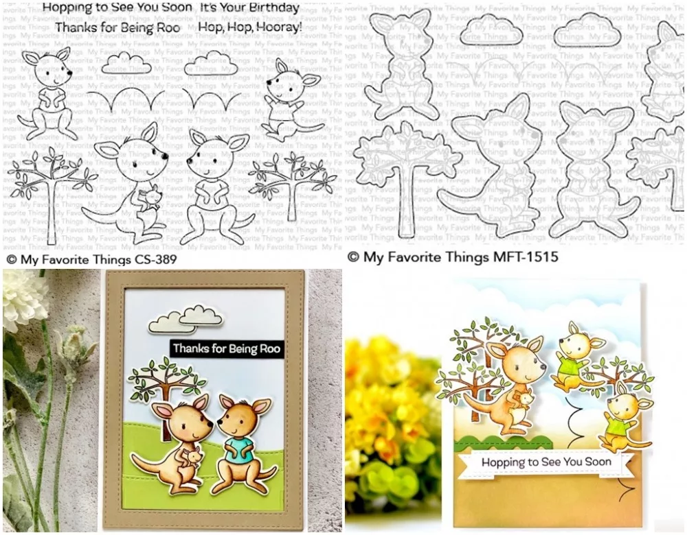 Vágósablon, bélyegzővel , Kangaroo Crew / MFT Clear Stamps + Die-namics Set (1 csomag).