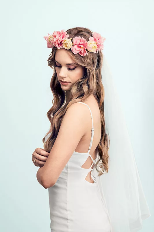 Virág korona fátyollal