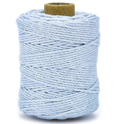 100% Pamut zsinór - light blue. Egy tekercs 25 méter 2 mm vastag zsineget tartalmaz.