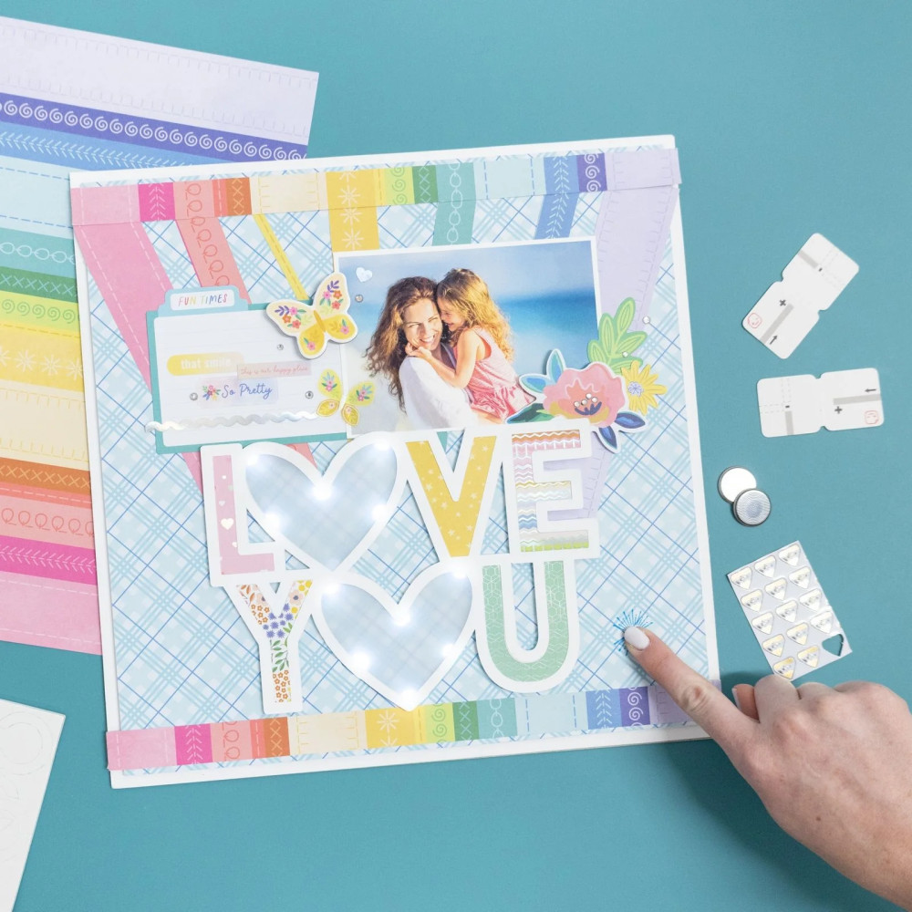 Ez a kezdőkészlet segít abban, hogy interaktív világítós elemeket adj scrapbook, üdvözlőlap vagy kézműves projektjeidhez