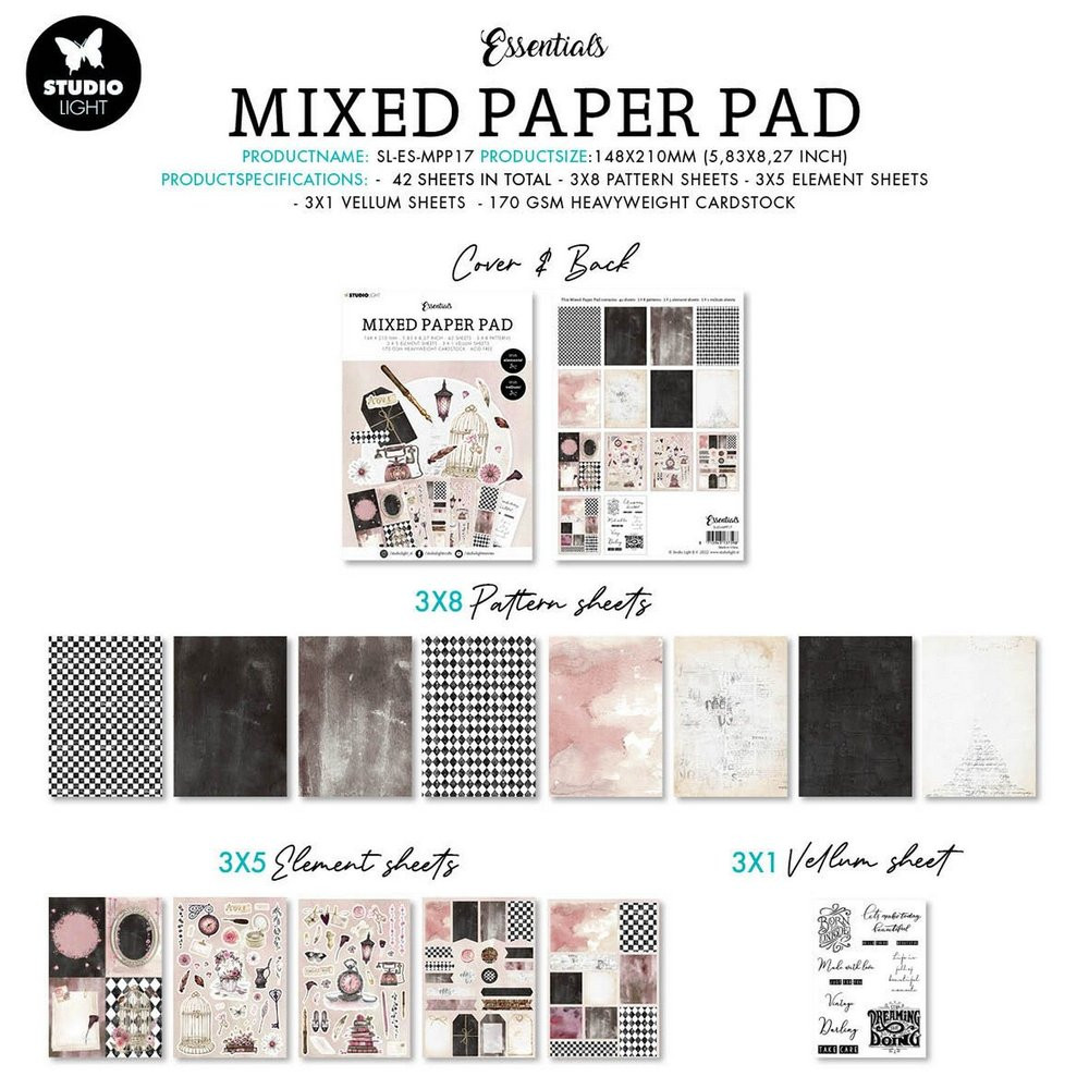 Papírkészlet / Kivágatok A5, Mixed Paper Pad Pattern paper Essentials nr.17 / SL Paper Pad (42 lap)