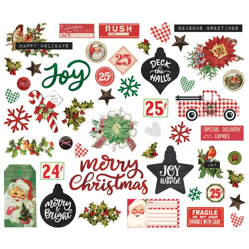 Scrapbook formára vágott, papír díszítőelem készlet. A Simple Vintage Dear Santa kollekció tökéletes kiegészítője. Ajánljuk scrapbooking oldalak, scrapbook albumok díszítésére, képeslap készítéshez.