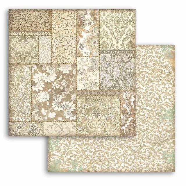 Stamperia Scrapbook papír 12" (30 cm) - Christmas Greetings - Ochre Patchwork - Paper Sheets (1 ív)