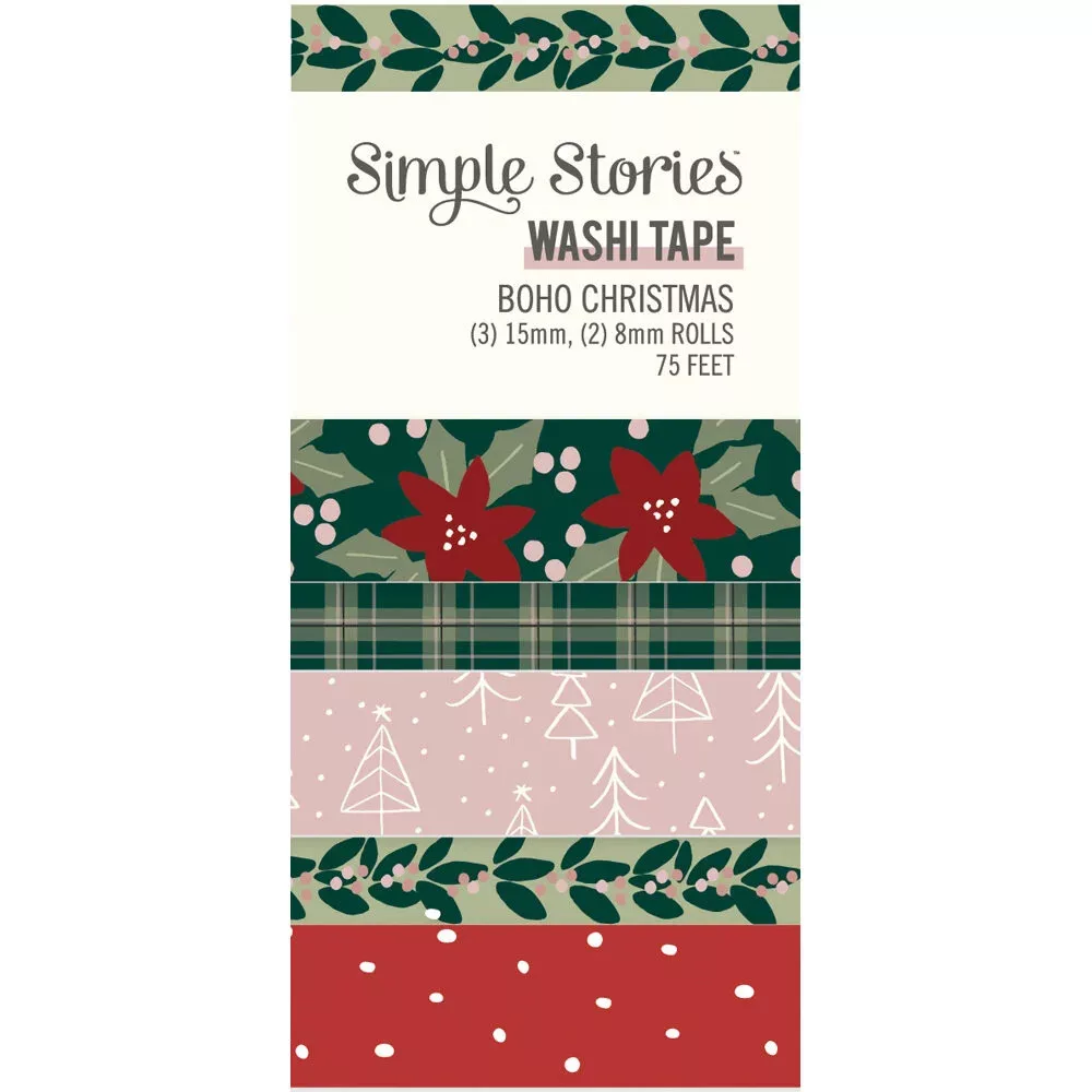 Simple Stories Dekorációs ragasztószalag  - Washi Tape - Boho Christmas (5 db)