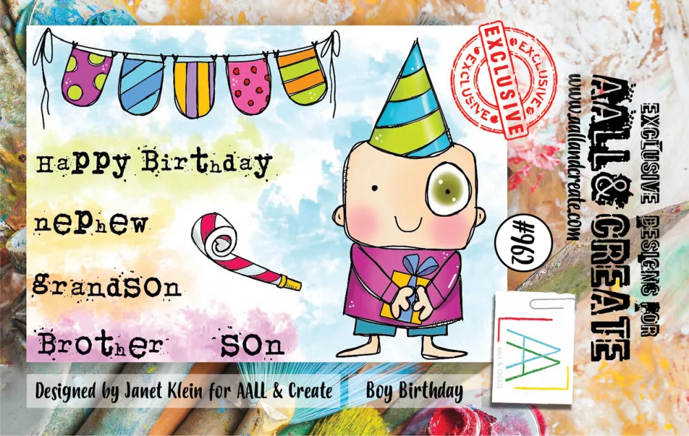 AALL and Create Szilikonbélyegző készlet - Boy Birthday. Használatához akril blokk (bélyegző alátét) vagy bélyegző pozícionáló szükséges.