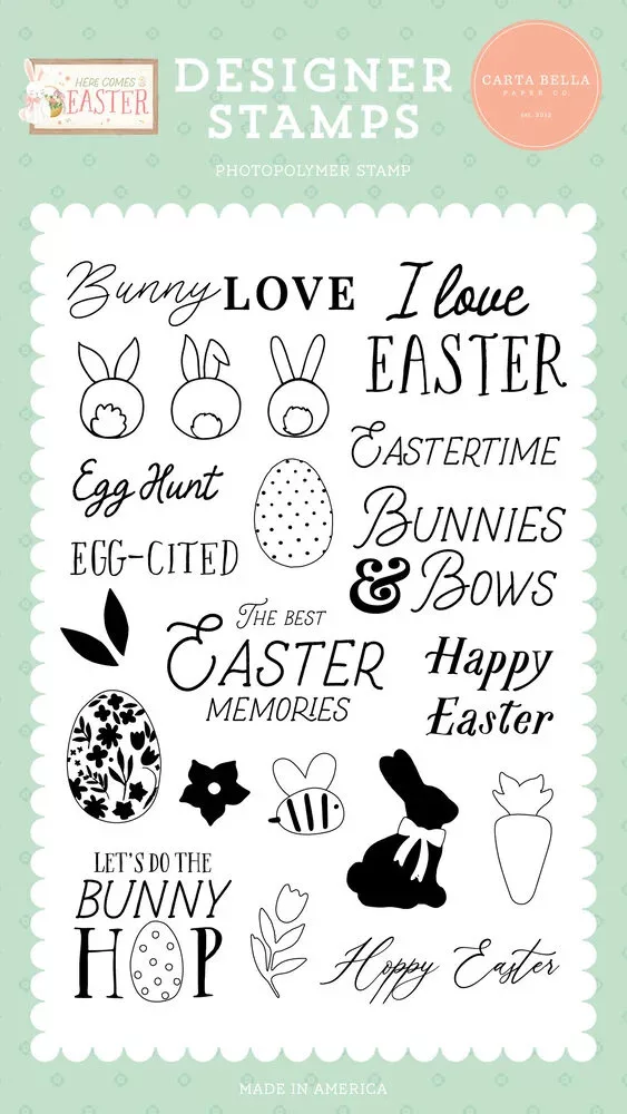 Carta Bella Bunny Hop szilikonbélyegző készlet. A Here Comes Easter kollekció tökéletes kiegészítője.