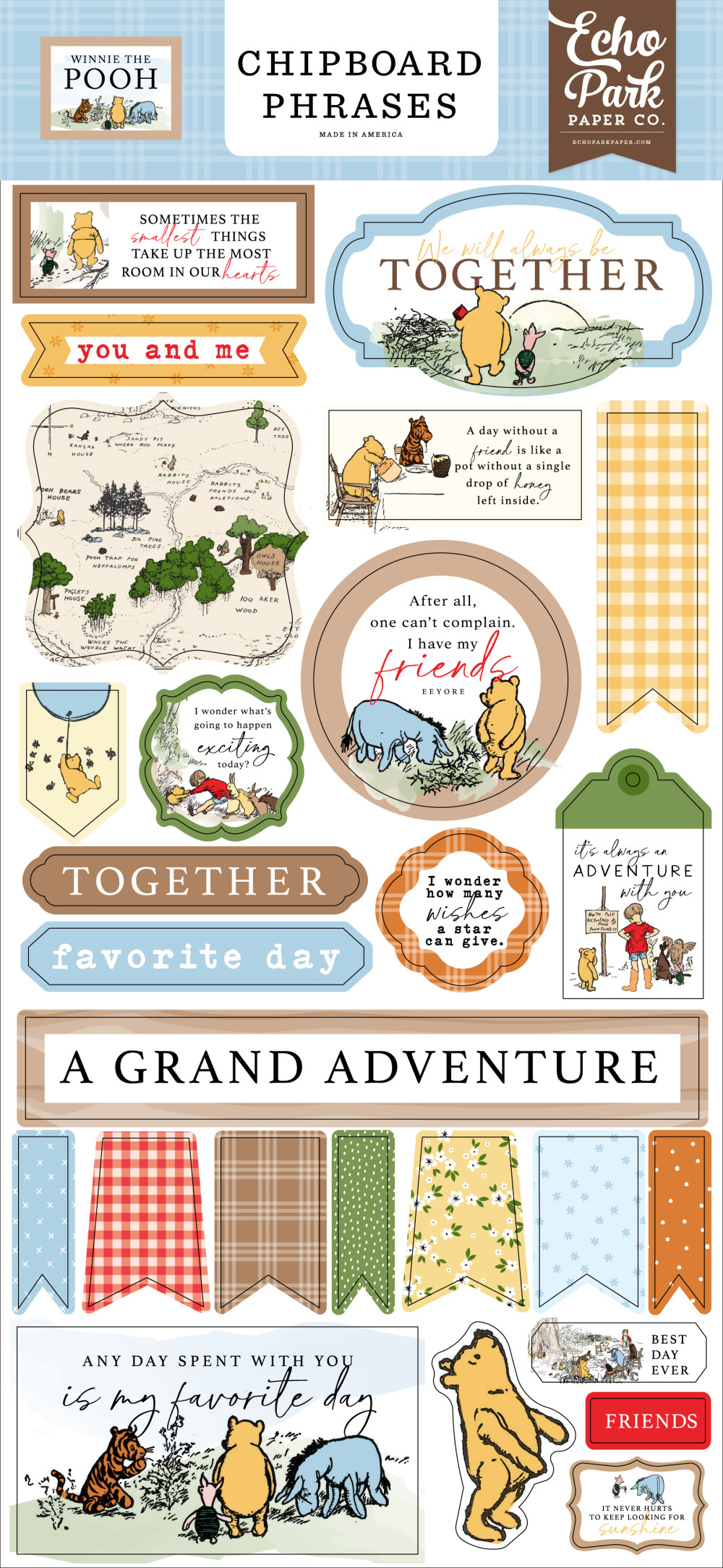 Echo Park Winnie The Pooh Chipboard 6"X12" Chipboard Phrases (1 ív)