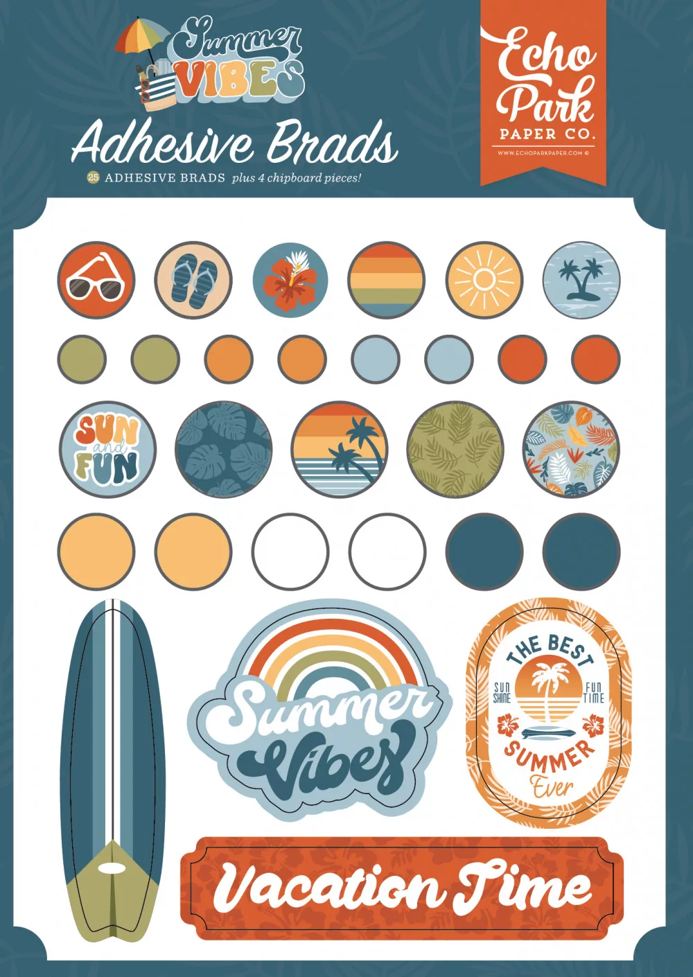 Echo Park Summer Vibes Díszítőelem Adhesive Brads (1 csomag).
