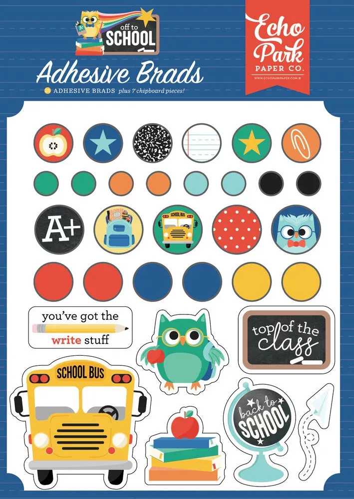 Echo Park Off To School Díszítőelem Adhesive Brads (1 csomag).
