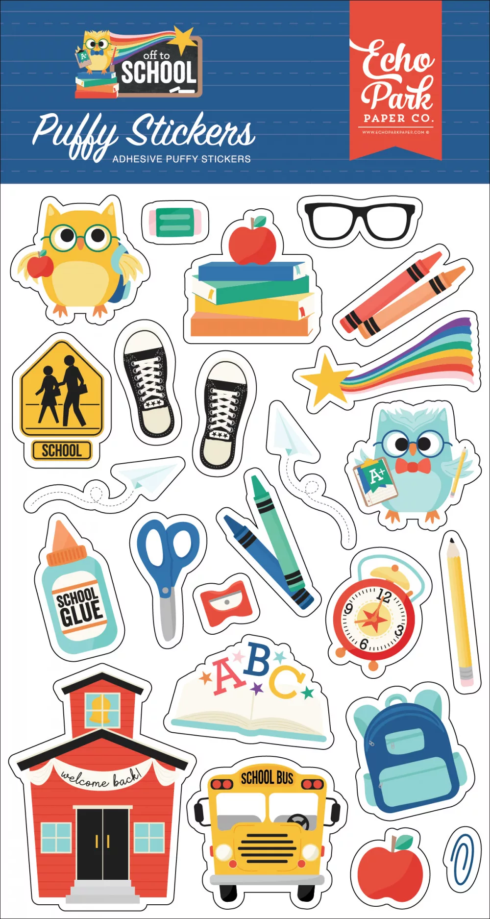 Echo Park Off To School Pufi matrica Puffy Stickers (1 ív).