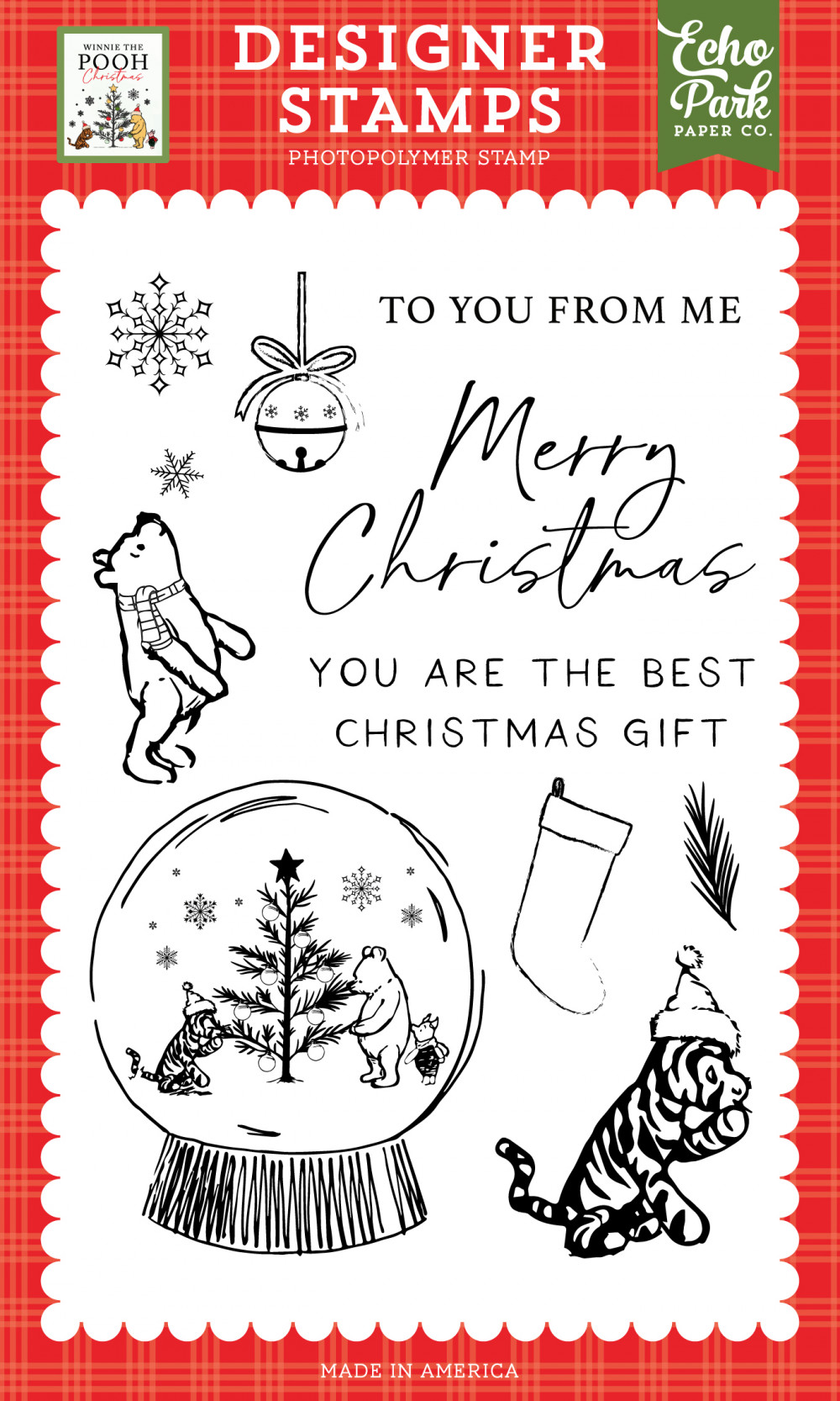 Echo Park Winnie The Pooh Christmas Snow Globe Scene Szilikonbélyegző Clear Stamps (1 db).