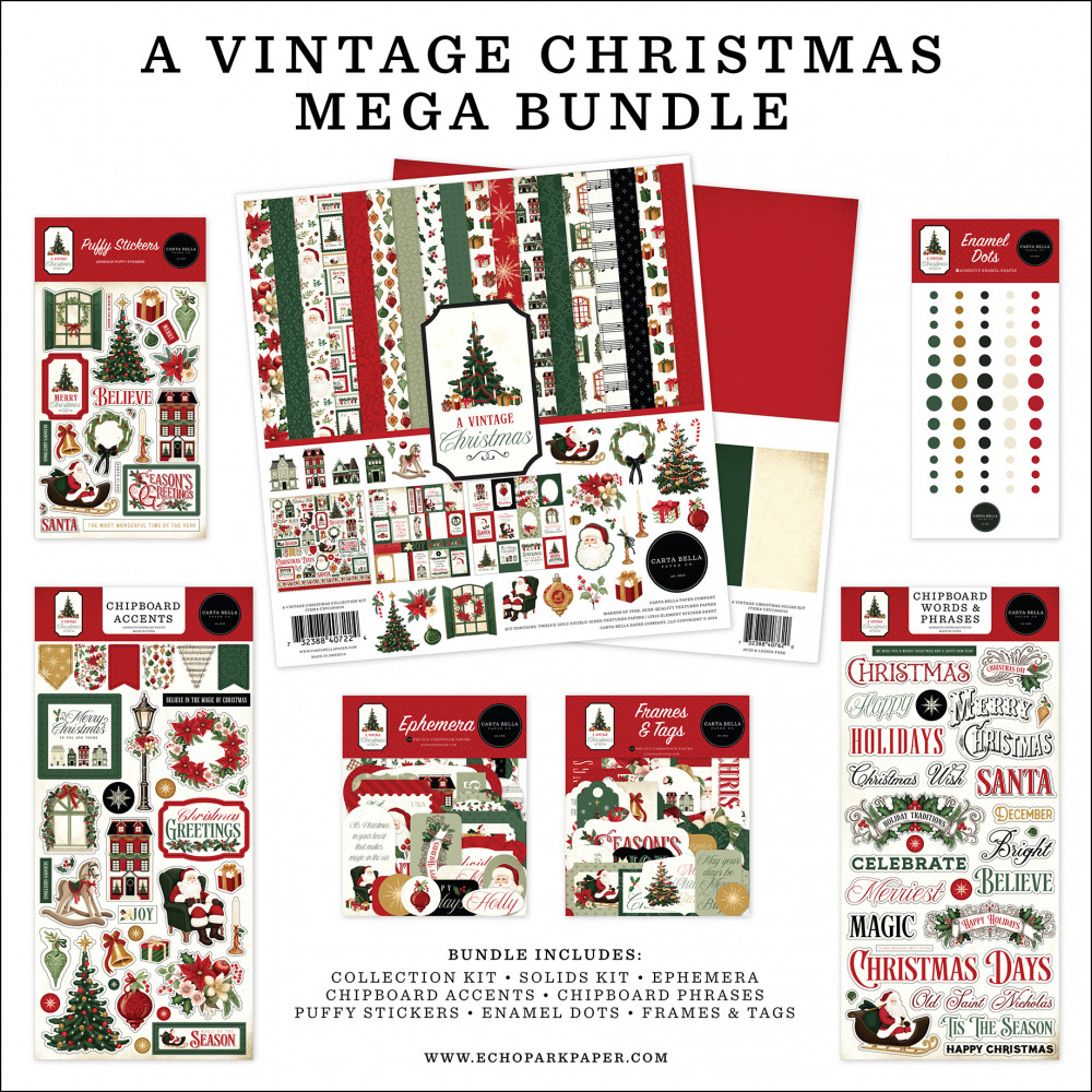 Carta Bella A Vintage Christmas Scrapbook alkotócsomag 12" (30 cm) Mega Bundle (1 csomag)