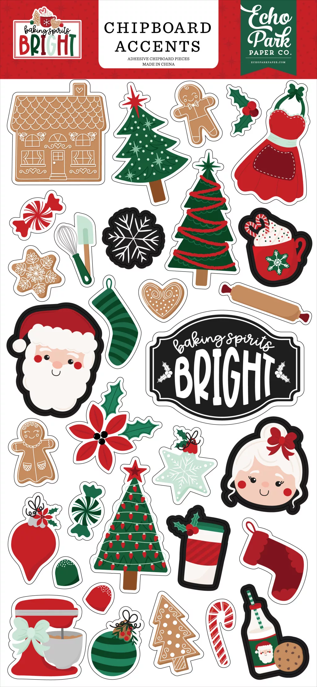 Echo Park Baking Spirits Bright Chipboard 6"X12" Chipboard Accents (1 ív).