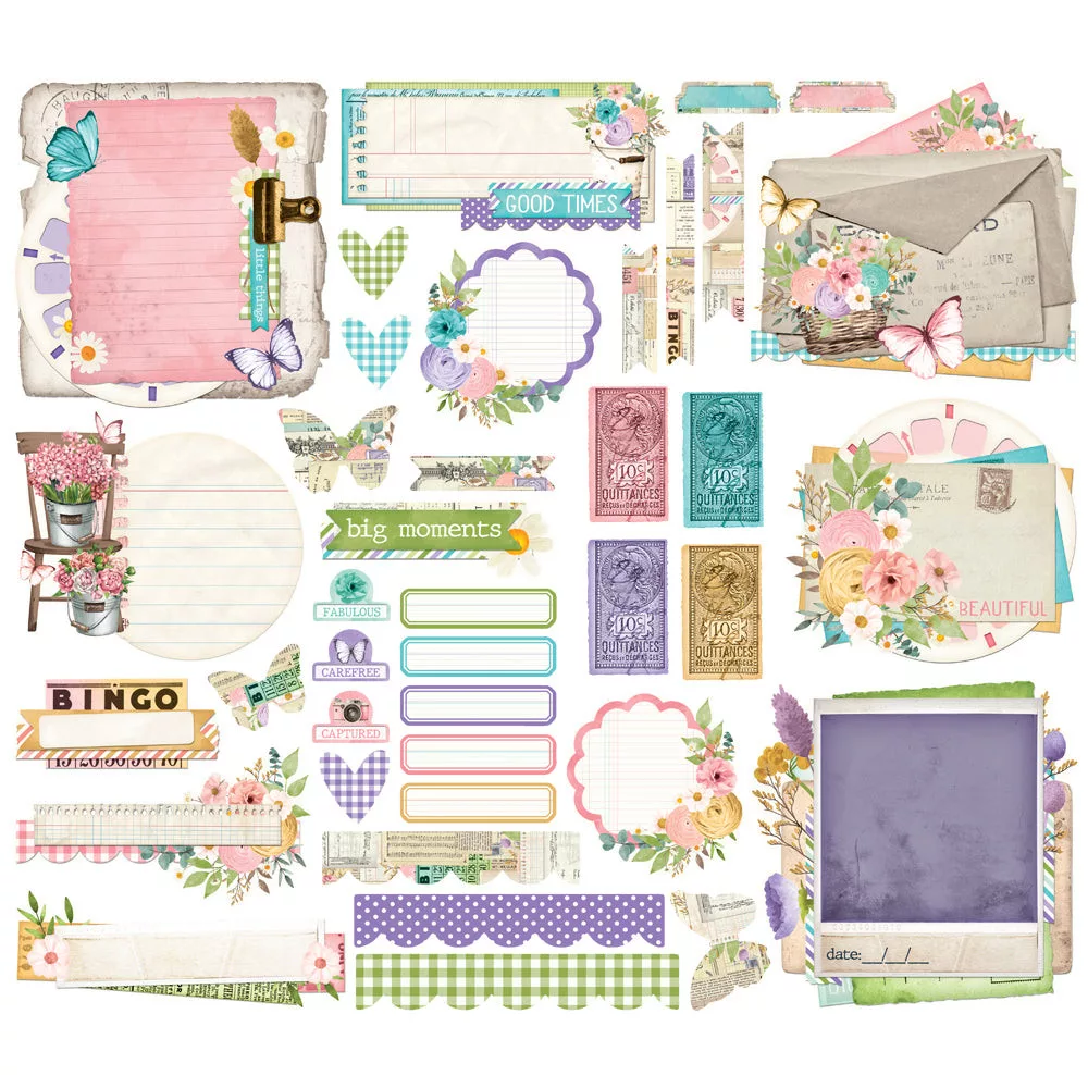 Scrapbook formára vágott, papír díszítőelem készlet. A Simple Vintage Flower Shoppe kollekció tökéletes kiegészítője. Ajánljuk scrapbooking oldalak, scrapbook albumok díszítésére, képeslap készítéshez.