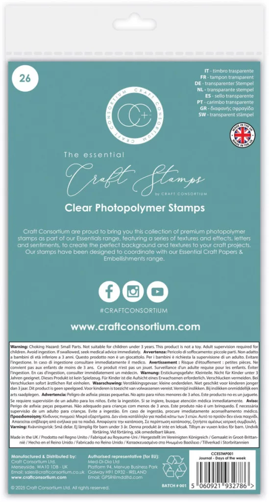 Fotopolimer bélyegző Days of the Week Craft Consortium A6 Clear Photopolymer Stamps (1 csomag)