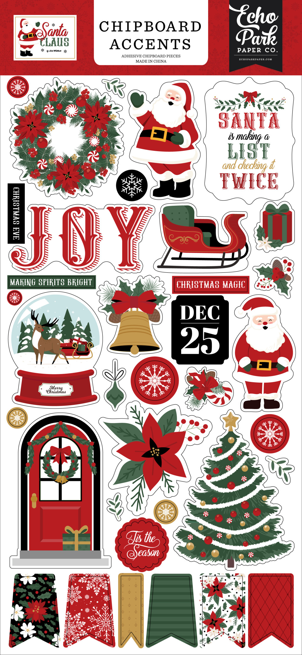 Echo Park Santa Claus Chipboard 6"X12" Chipboard Accents (1 ív).