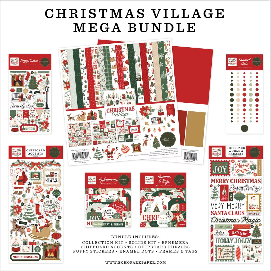 Carta Bella Christmas Village Scrapbook alkotócsomag 12" (30 cm) Mega Bundle (1 csomag).