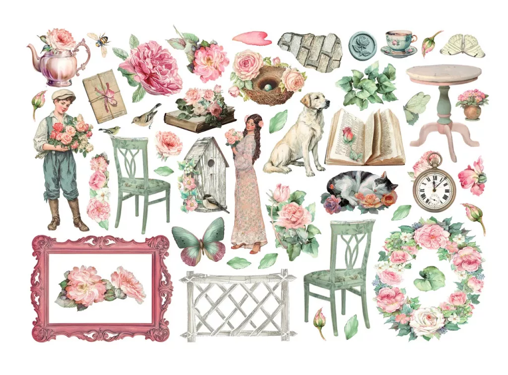 Stamperia House of Roses Kivágatok - öntapadós Ephemera (1 csomag).
