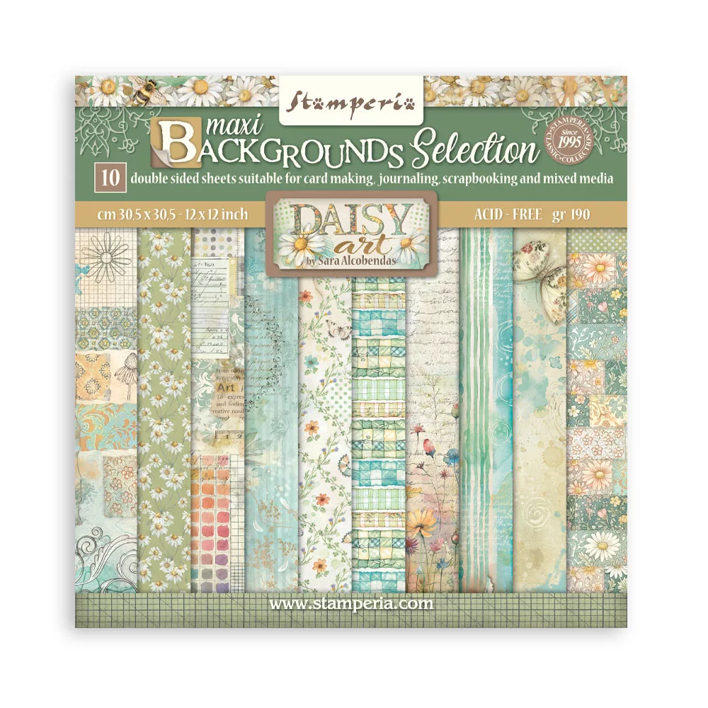 Stamperia Daisy Art Papírkészlet 12" (30 cm)  Paper Pack Maxi Background Selection (10 ív)