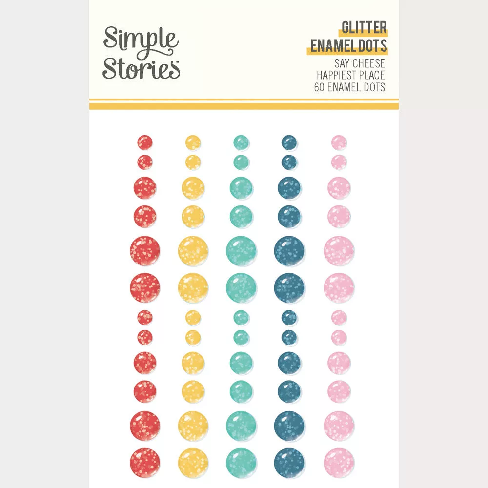 Simple Stories Díszítőelem Say Cheese Happiest Place Glitter Enamel Dots (1 ív).