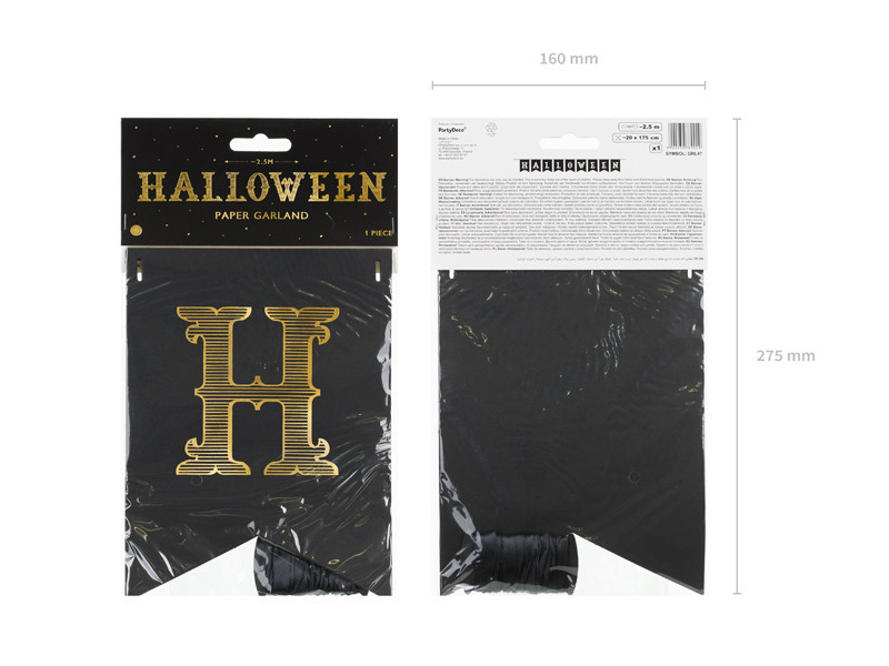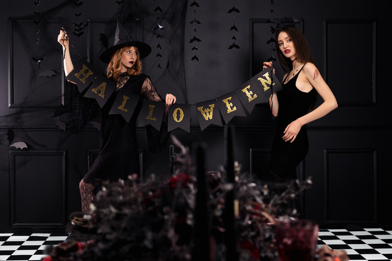 • Fekete Papír Banner: A készlet tartalmazza a betűket, amelyekből a "Halloween" feliratot összeállíthatod.