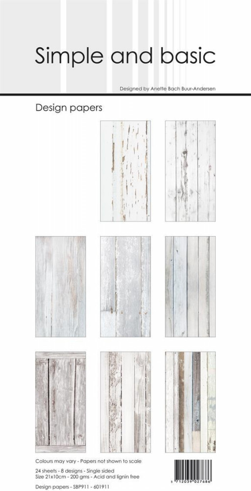 Papírkészlet 10x21 cm, White Wood / Simple and Basic Slim Paper Pack (24 ív).